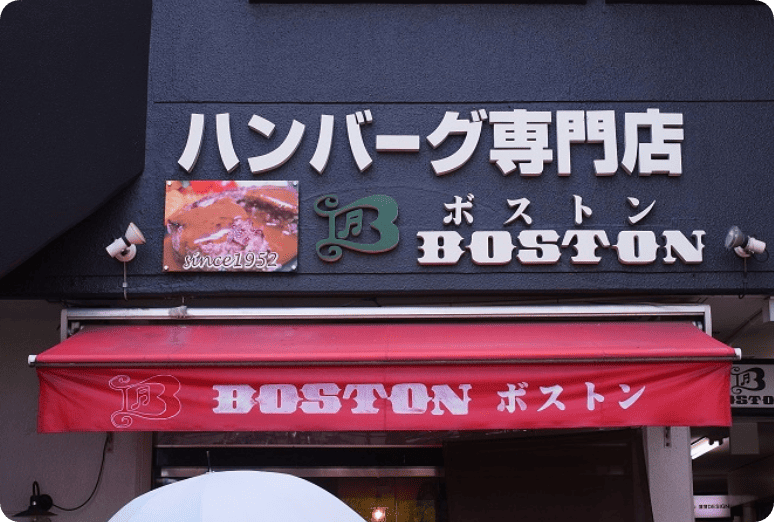 公園から歩いてすぐの「ハンバーグ専門店BOSTON長居店」へ。お昼前なのに長蛇の列ができていて、あまりの人気っぷりに驚くララさんとジョンさん。「これは絶対に美味しいですよね!」