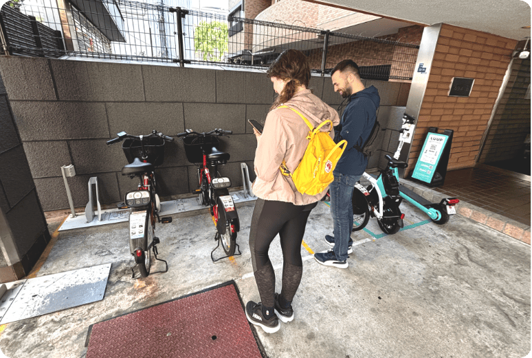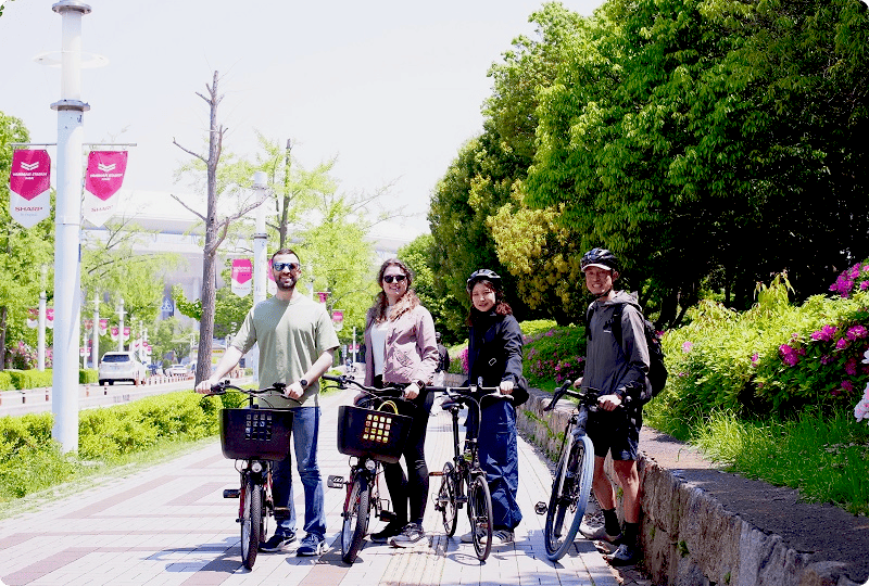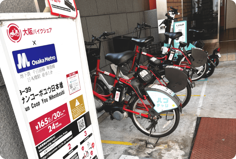 アメリカから長期休暇で遊びに来ているララさんとジョンさんに、いつもとは違った大阪を紹介するため、気軽に自転車が借りられるドコモ・バイクシェアで電動アシスト自転車をレンタルしました。大阪には670以上のシェアポートがあって、好きな場所で借りて好きな場所で返せるので本当に便利!