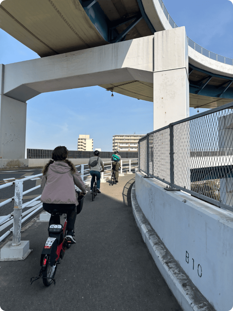 ビル12階くらいの高さまで720度ループを登るので、全長が長いんです。最初は「これって本当に乗れるの?」と不安になる人も多いそうですが、電動自転車なら体力にあまり自信がなくてもスイスイ登れてしまいます。頂上にたどり着いた瞬間、風を全身で感じるような爽快感に包まれました。